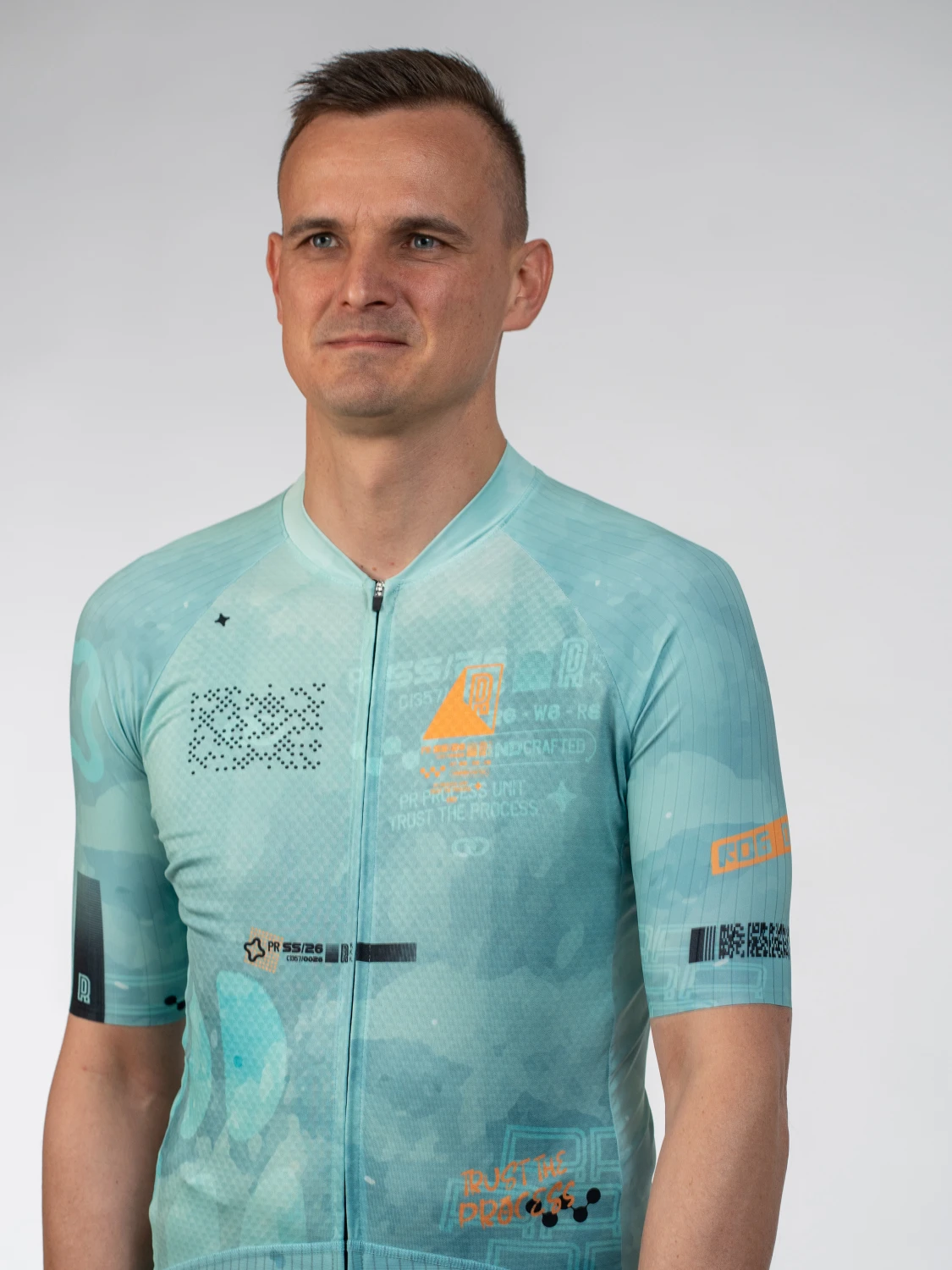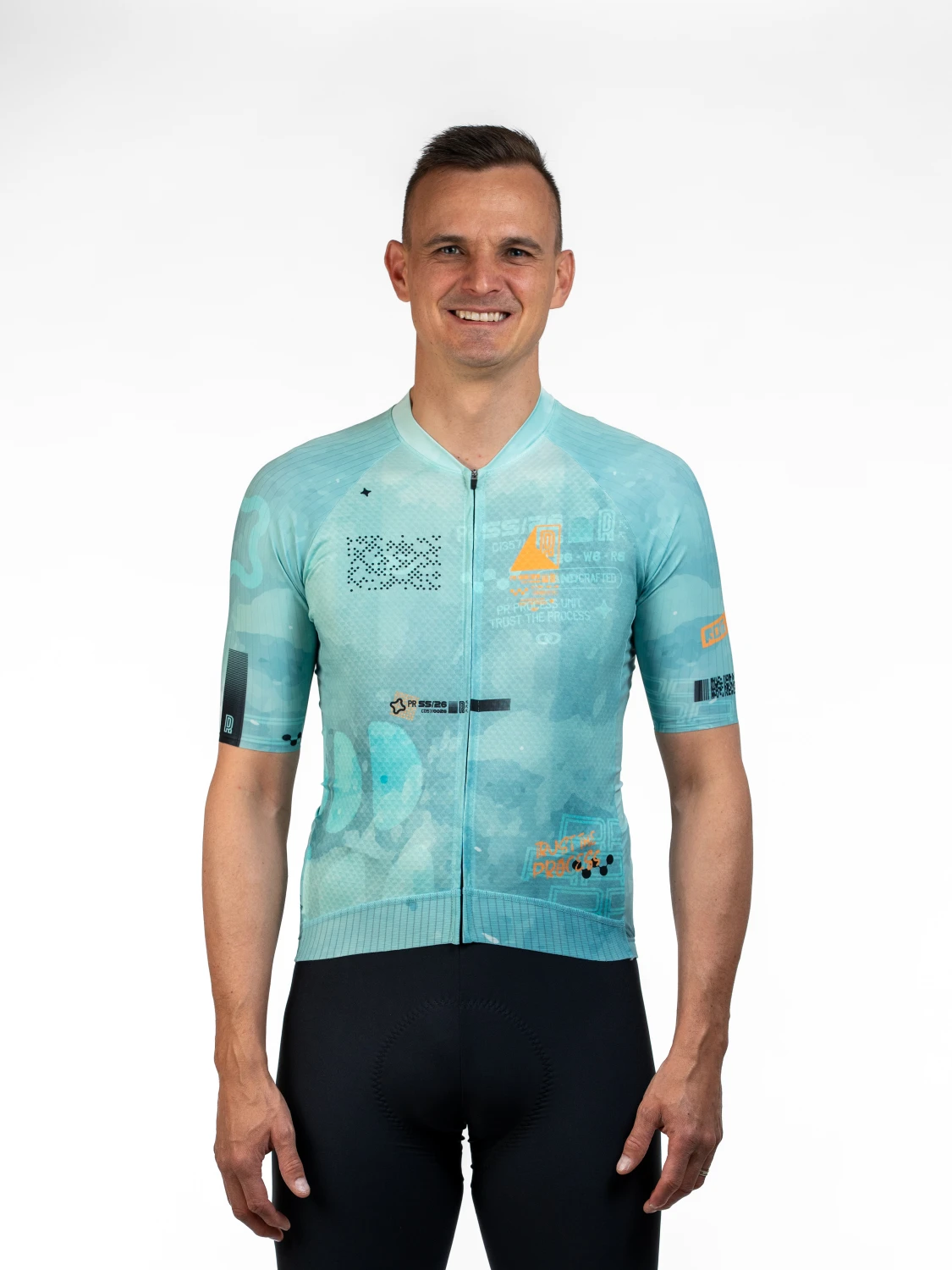 Kolesarski dres, zasnovan v duhu kolekcije Trust the Process. Kombinacija micrographics elementov, strukturiranih linij in tehničnih detajlov ustvarja vizualni jezik procesa. Lahek, zračen in ustvarjen za udobje med vožnjo. Dres, ki združuje zmogljivost in estetiko. Ustvarjen za vsak kilometer, ki gradi rezultat. Novi izboljšani materiali za novo kolesarsko sezono.