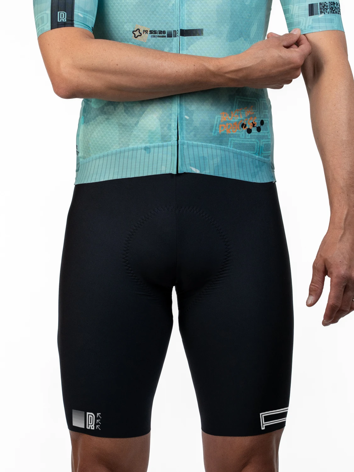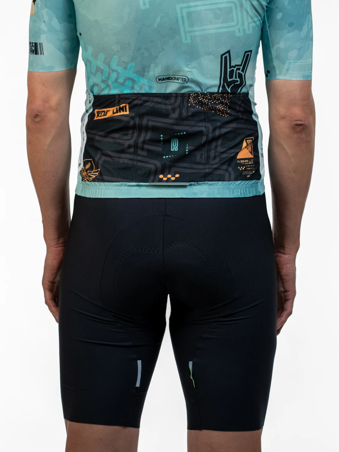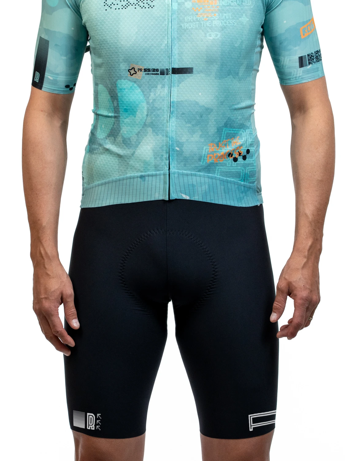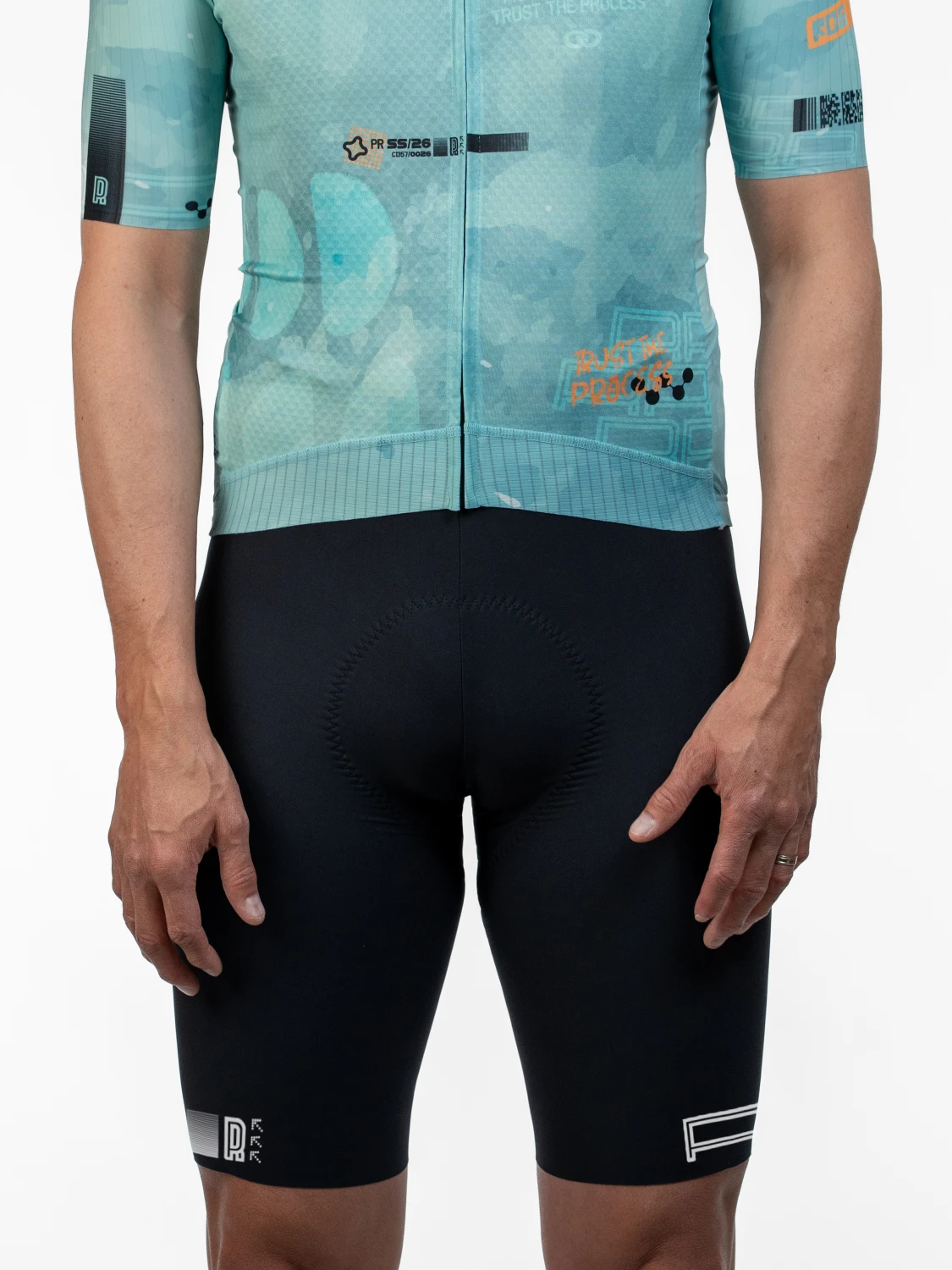 Črna barva in minimalističen dizajn iz kolekcije Trust the process se enostavno kombinira z ostalo kolesarsko opremo predvsem pa z našim dresom in brezrokavnikom.