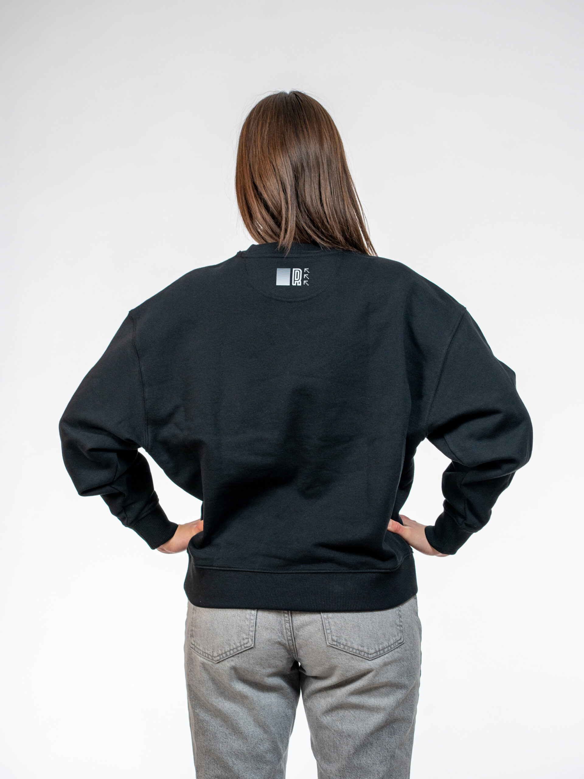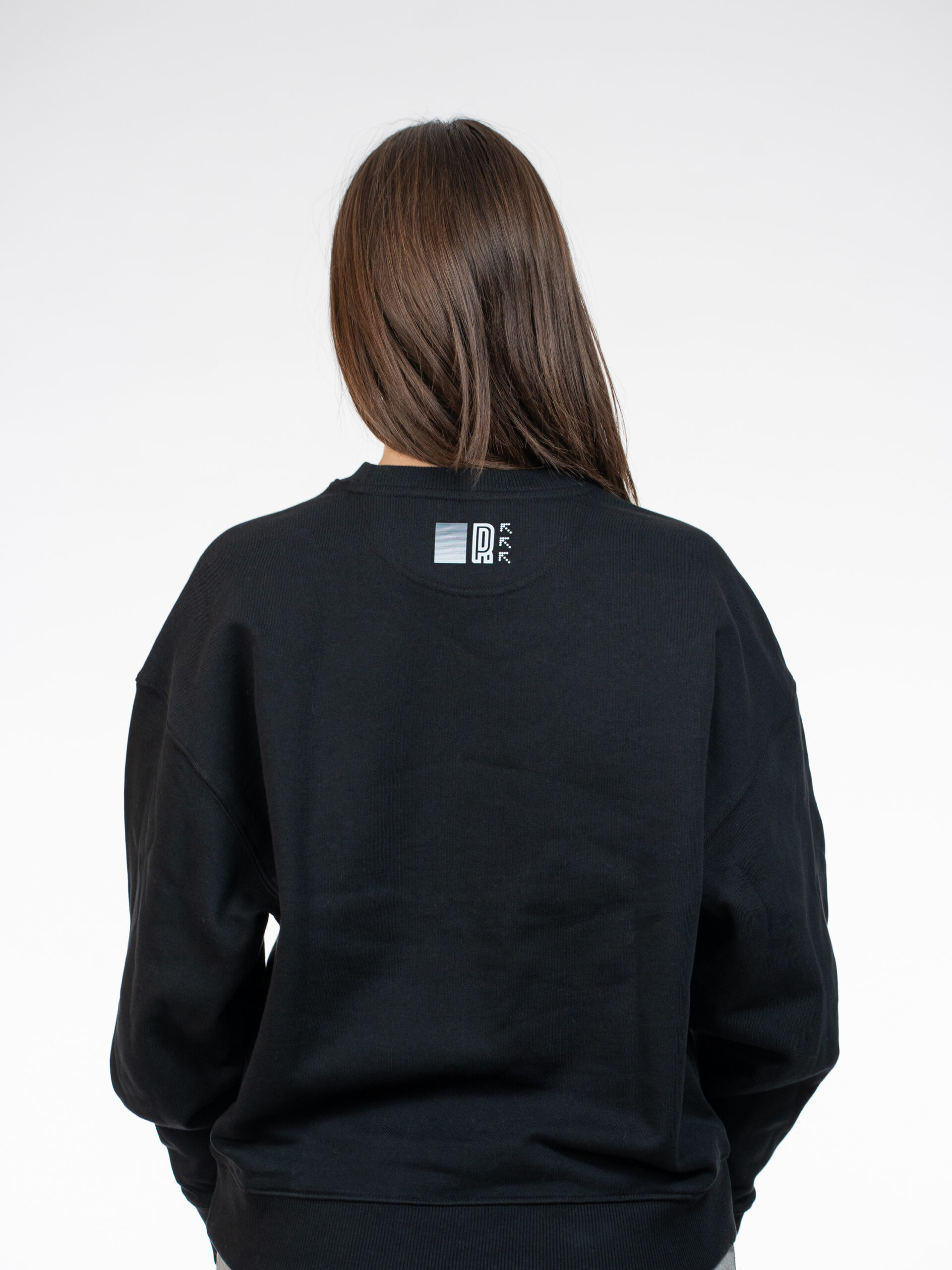 Za tiste, ki prisegajo na brezčasen stil. Črn oversized pulover z dinamičnim dizajnom odraža vztrajnost in odločenost, ki jo potrebujemo na poti do cilja.
